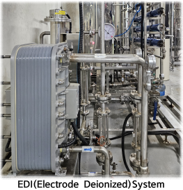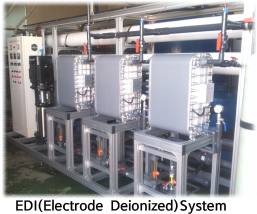 EDI System은 이온교환막, 이온교환수지 그리고 직류전기를 이용하여 순수를 생산하는 장치이다.